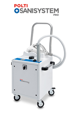 Produsele din gama Polti Sani System sunt generatoare de abur pentru igienizarea frecventă a suprafețelor, țesăturilor și obiectelor pe parcursul zilei. Tehnologia patentată din interiorul dozatorului generează abur saturat uscat supraîncălzit până la 180°C, capabil să reducă încărcătura microbiană de pe suprafețe.